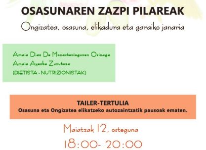 Las nutricionistas Amaia Ayerbe y Amaia Díaz de Monasterioguren presentarán una charla sobre bienestar, salud, alimentación y productos de temporada.